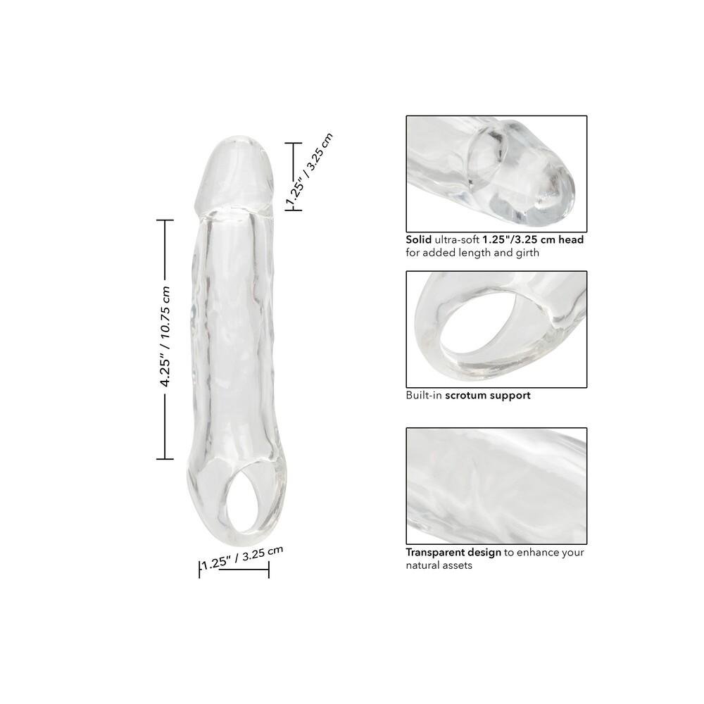 The Performance Maxx Clear Extension 5.5 inches is designed to boost your size and confidence, offering added length and girth. This extension provides a solid, ultra-soft 1.25 inch, 3.25 cm head, creating a realistic feel during use.