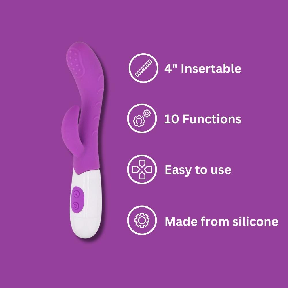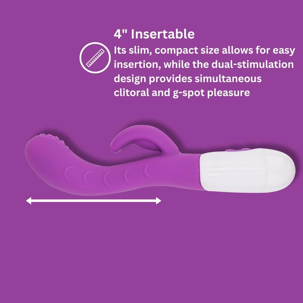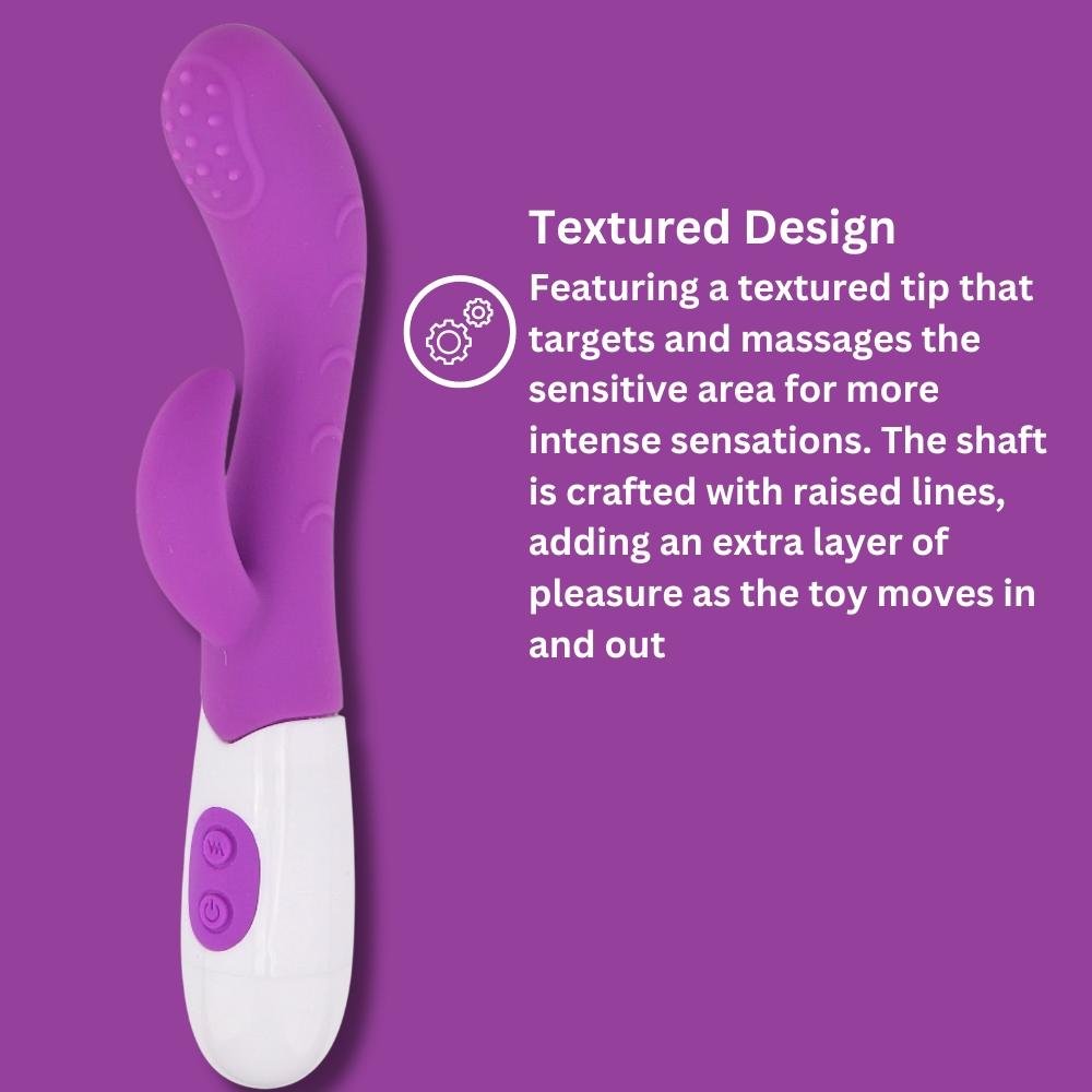 The uniquely curved shaft targets your G-spot with pinpoint accuracy, while the textured tip enhances internal sensations. Together with the rabbit-style ears offering intense clitoral stimulation, this versatile toy assures full and satisfying experiences.