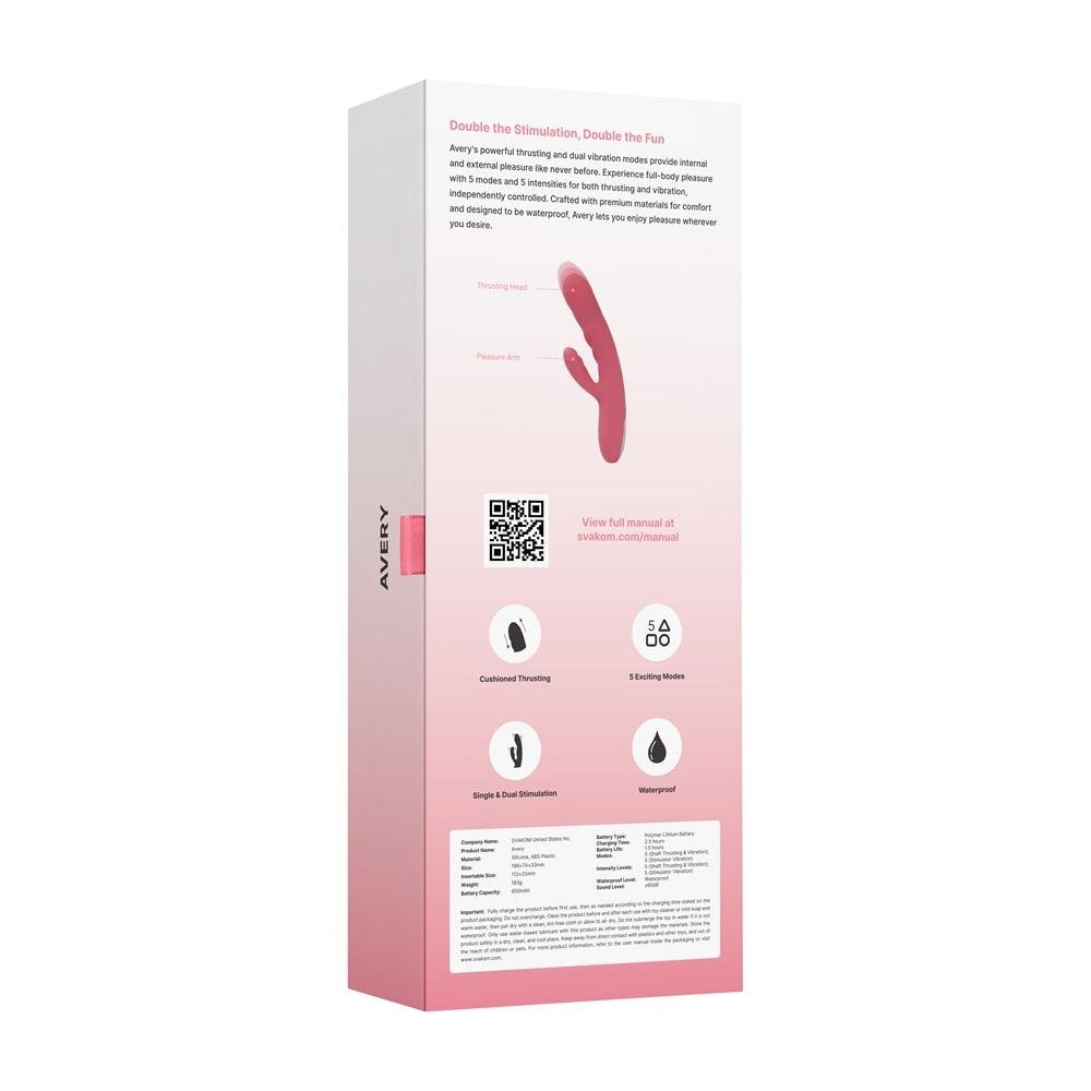 Svakom Avery Thrusting Vibrator with Clitoral Stimulator Pink